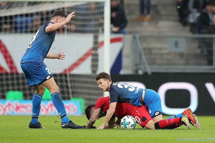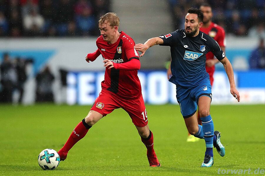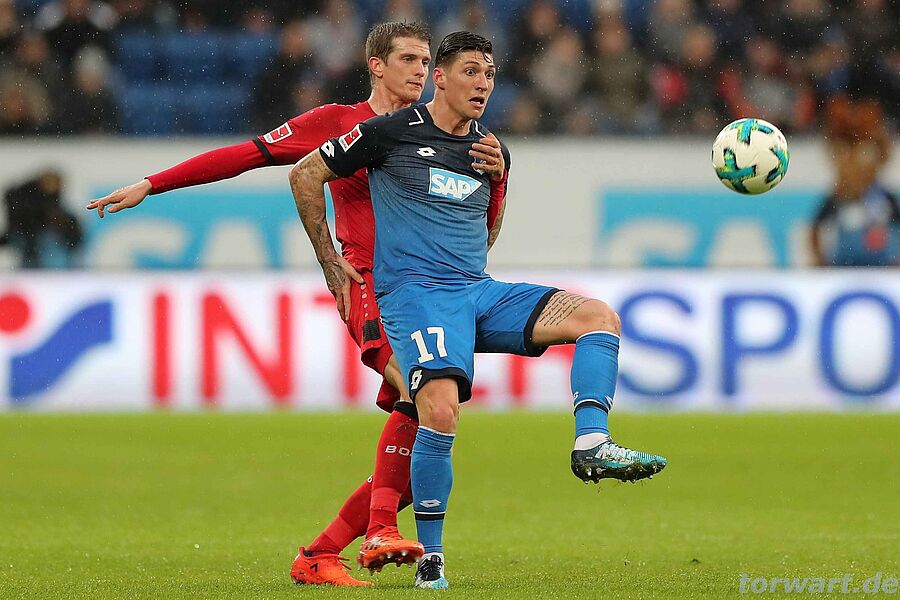 Bernd Leno / Leverkusen: Zum ersten Mal wurde es fürLeno in der 26. Minute so richtig gefährlich: Ein Hereingabeversuch von Geiger von rechts im Strafraum wurde von Sven Bender unfreiwillig an die Unterkante der eigenen Querlatte abgefälscht, von wo der Ball ins Feld zurückprallte. Leno wäre bei diesem krummen Ding wohl machtlos gewesen. Im ersten Durchgang passierte vor dem Bayer-Tor nur noch wenig, da die TSG offensiv kein Durchkommen fand.
