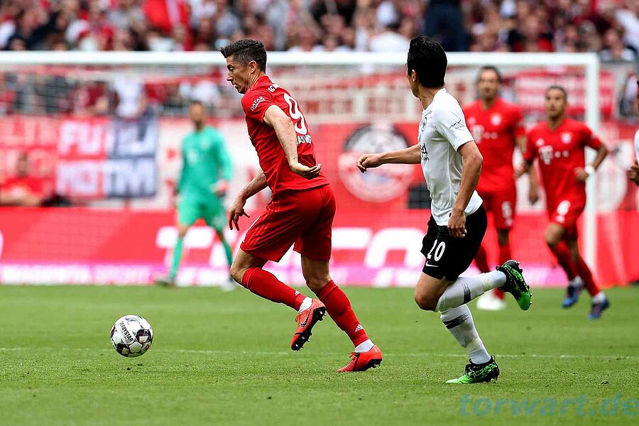 Kevin Trapp / SG Eintracht Frankfurt: Im letzten Spiel der Saison musste der deutsche Nationaltorhüter schon früh hinter sich greifen, denn die Gastgeber legten los wie die Feuerwehr: Über Lewandowski und Müller kam der Ball zu Coman, der sich im Sechzehner bedankte und ins rechte Eck gekonnt vollendete. Gnabry, Alaba und Lewandowski waren dann in den Folgeminuten aber entweder zu unpräzise oder fanden in Eintracht-Keeper Trapp ihren Meister. Es war ein einseitiges Spiel, das sich meist in Richtung Trapp orientierte. Trapp kassierte in der Folge noch drei Gegentore, denn die SGE war gegen bärenstarke Bayern überfordert. Trapp verhinderte mit starken Paraden eine noch höhere Niederlage, zeigte trotz fünf Gegentoren und kleineren Unsicherheiten eines der besten Saisonspiele. Nach einer langen Saison für die SGE und Kevin Trapp entscheidet sich die Zukunft für ihn im Sommer. Über die gesamte Saison hinweg zeigte Trapp, dass er zu den besten deutschen Torhütern in der Bundesliga gehört.