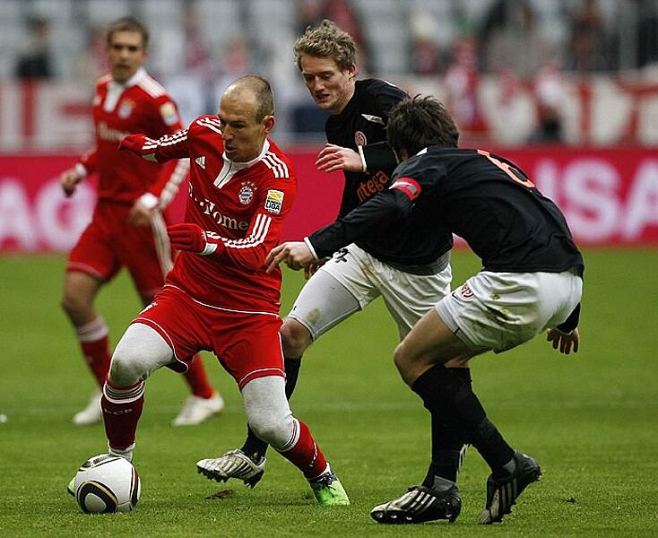 Heinz Müller / Mainz: Der Nachmittag in München hat Heinz Müller und allen, die zusahen, wieder einmal die tragische Sonderrolle des Fußball-Torhüters vor Augen geführt. Anders als bei den Kollegen im Handball oder Eishockey reicht im Fußball ein einziger Fehler, um das Spiel zu entscheiden. Lange Zeit war Müller die auffälligste Figur in der zugeschneiten Allianz-Arena. Er war so überragend, so unüberwindbar, dass sich in den Gesichtern der Münchener Stürmer langsam aber sicher Verzweiflung breit machte. Dann schlug Arjen Robben eine gefühlvolle Flanke auf den Schädel von Daniel van Buyten und der wiederum beförderte das Spielgerät in Richtung des Mainzer Tores. Müller hatte sich bereits hingekniet, um diesen einfachen Ball zu fangen, doch irgendetwas muss dann schief gelaufen sein. Durch die Beine von Müller rutschte die orangefarbene Pille ins Tor. Ein schlimmer Fehler und alle Paraden der ersten Halbzeit waren plötzlich vergessen, Müller der Depp des Tages. Was nun wirklich nicht stimmt: Der Mainzer Torwart Heinz Müller hat gegen den FC Bayern eine Weltklasse-Leistung abgeliefert – und einen Fehler gemacht.