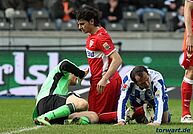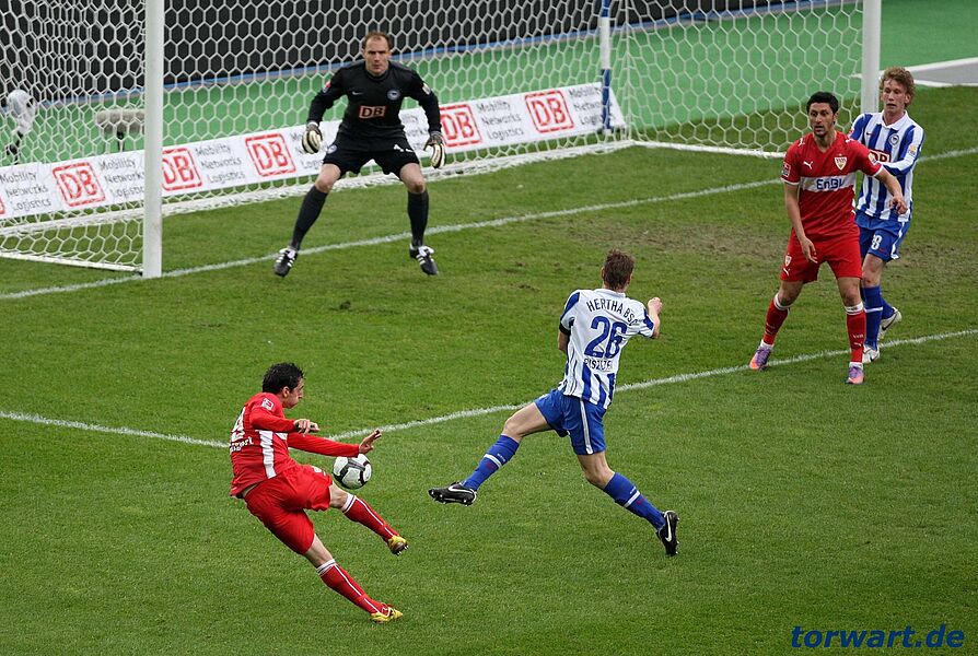 Jaroslav Drobny / Hertha:Es wird die Frage bleiben, die sich Jaroslav Drobny in den kommenden Tagen immer wieder stellen wird: War dieser Schuss von Cacau nach 74 Minuten zu halten? Und wenn ja: Wie? Der Stuttgarter Auswahlstürmer hatte eine Viertelstunde vor dem Ende einfach mal draufgehalten, eigentlich ein harmloser Versuch. Doch von Berger fälschte den Ball so unglücklich ab, dass er knapp über Drobny hinweg ins Tor segelte. Wäre der Herthaner stehen geblieben – er hätte den Ball locker gefangen. Einen Vorwurf muss man ihm aber dennoch nicht machen. Dass Hertha auch dieses Spiel verlor, lag sicherlich nicht am Torwart.