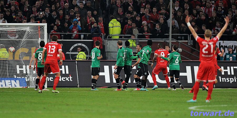 Hannover scheint die Dreifachbelastung aus Liga, Pokal und Europa League mittlerweile zu spüren zu bekommen. Gegen Düsseldorf kassierten die Niedersachsen eine unglückliche Niederlage. Wenig dazu beitragen konnte Keeper Zieler, der bei beiden Gegentoren der Fortunen chancenlos war. Ansonsten zeigte sich der 96-Schlussmann bei den wenigen Torgelegenheiten der Düsseldorfer souverän. Einen Kritikpunkt sprach dann aber noch Ex-Bundesligaspieler Thomas Helmer in der TV-Sendung „Doppelpass“ an: Muss in der Mauer, für die Zieler verantwortlich ist, nicht ein großer Spieler ganz außen stehen, und eben nicht Sergio Pinto? So wäre eventuell das 1:2 durch Ilsö zu verhindern gewesen.