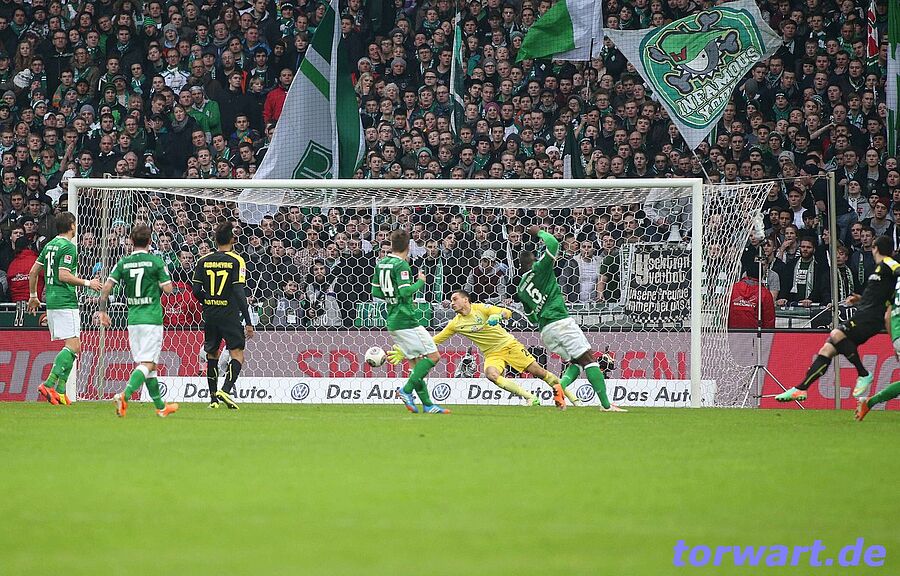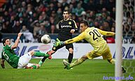 Roman Weidenfeller / Dortmund: Wenn man auf Bremer Seite etwas Positives hervorheben kann, dann wohl die Tatsache, dass der Nachwuchs auf sich aufmerksam machen konnte. Davon zeugte nicht nur der Ehrentreffer, den Aycicek kurz vor Schluss erzielte. Aus zehn Metern hatte der Youngster in seinem ersten Bundesligaspiel flach ins lange Eck vollendet und dabei BVB-Schlussmann Roman Weidenfeller keine Abwehrmöglichkeit gelassen. Dieser hatte alles in allem einen ziemlich ereignislosen Nachmittag, wobei seine größte Tat im Schuss eines weiteren Werder-Youngsters begründet lag, einem Schuss von Kobylanski aus rund 20 Metern, der Weidenfeller zu einer sehenswerten Flugeinlage nötigte.