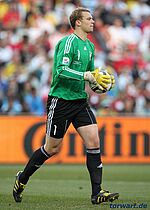 In ein paar Wochen wird David James 40 Jahre alt, doch schon mit 39 Jahren war er der älteste Keeper des WM-Turniers. Diese enorme Erfahrung spielte er gegen Deutschland voll aus: Gänzlich untypisch für einen englischen Keeper fing er alle hohen Bälle souverän ab und strahlte extreme Ruhe aus. Wer auf einen Aussetzer oder auf einen Abpraller gehofft hatte, der tat das vergeblich. Gegen Özil und Klose, die beide freistehend vor ihm auftauchten, parierte er zweimal stark. Im Gegensatz zum zweiten Gegentreffer konnte man ihm beim ersten Gegentreffer von Klose keine Vorwürfe machen. Da ein Verteidiger am Mann war, konnte er seinen Kasten nicht frühzeitiger verlassen. Beim Treffer von Lukas Podolski ließ er sich aus spitzem Winkel tunneln. Das sah zwar unglücklich aus, von einem Fehler kann man aber nicht sprechen. Ähnlich war es bei Gegentreffer Nummer drei: Wieder sah James nicht gut aus, allerdings war Müller gut postiert und hatte lange Zeit, sich auf den Schuss vorzubereiten. Verständlich, dass James auf einen Schuss ins lange Eck spekulierte. Völlig machtlos war er dann beim vierten Gegentor durch Müller. Fazit: An Keeper James lag es absolut nicht, dass England gegen Deutschland seine höchste WM-Niederlage kassierte. [5 Punkte von 10 Punkten]