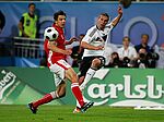 bei einer Flanke am Ball vorbei, doch der baumlange Mertesacker hatte ihn dabei