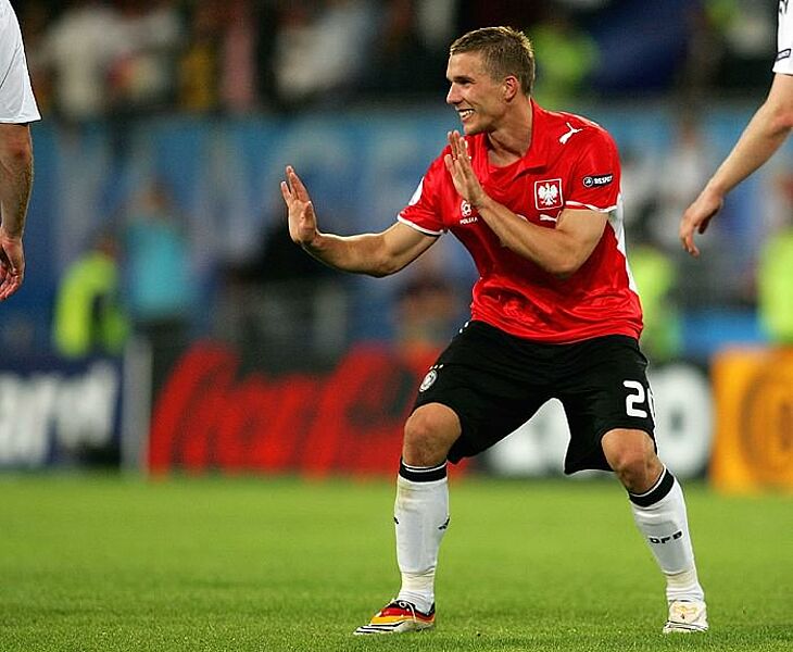 das neuartige Spielgerät würde direkt im Wörthersee landen. Das Tor durch Podolski