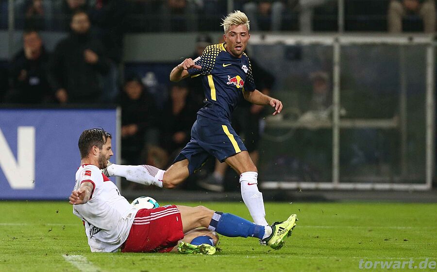 Christian Mathenia / Hamburg: Nach sechs Punkten aus den ersten zwei Spielen, wartete am dritten Spieltag eine richtige Herausforderung auf HSV-Keeper Mathenia und seine Rothosen. Vor heimischer Kuliise war der Vizemeister der vergangenen Saison aus Leipzig zu Gast. Die Leipziger drückten mit ihrem laufintensiven Spiel der Partie früh ihren Stempel auf: Keita und Augustin ließen jedoch erste Chancen liegen. Ansonsten passierte in der ersten Halbzeit aber auffallend wenig.