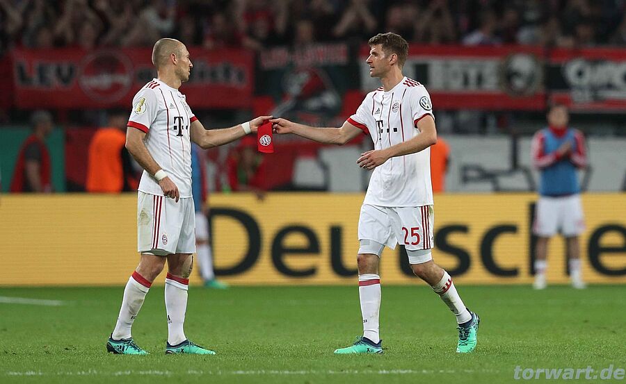 Dann passierte bis zur 52. Minute nichts Spannendes vor dem Leno-Tor. Das sollte sich im zweiten Durchgang aber entscheidend ändern. Tah ließ Müller dann nämlich kurz zu viel Platz und Müller stellte auf Zuspiel von Thiago auf 3:1. Bayern drückte weiter. Sekunden später machte Thiago mit einem präzisen Flachschuss ins linke Eck endgültig den Deckel drauf. Zwei Minuten danach war Bayers Hintermannschaft wieder überfordert, Robben kam frei zum Abschluss - und Müller drückte das Leder letztlich über die Linie. Leno wurde agierte phasenweise alleine gegen offensiv glänzend und zielstrebig agierende Münchner.