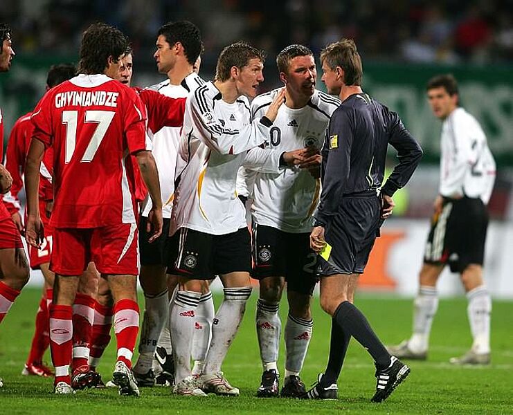 Die deutsche Nationalmannschaft gewann in Rostock das Freundschaftsspiel gegen Georgien mit 2:0. In der 1. Halbzeit ging die deutsche Elf nach einen Traumtor von Sebastian Schweinsteiger mit 1:0 in Führung. Besonders in der ersten Halbzeit hielten die Gäste vom Kaukasus mit der deutschen Mannschaft mit und kamen ebenfalls zu der einen oder anderen Torchance. Im Tor der deutschen Mannschaft stand Timo Hildebrand in seinem 3. Länderspieleinsatz. Nach der Pause mußte Deutschland ab der 48. Spielminute mit 10 Mann das Spiel zu Ende spielen. Lukas Podolski sah nach einer Tätlichkeit die rote Karte. Trotz Unterzahl kontrollierte die deutsche Elf das Spiel. Kapitän Ballack machte in der 67. mit dem 2:0 nach schöner Kombination alles klar.
