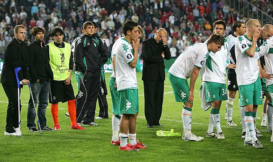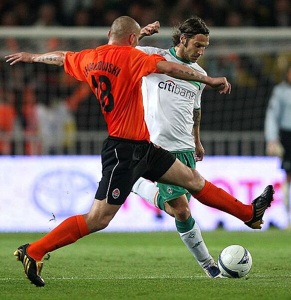 Tragisch, weil Wiese mit seinen Leistungen erst dafür gesorgt hatte, dass Bremen dieses Finale in Istanbul erreichte. Unhaltbar war Jadsons Schuss nicht, es war aber auch kein Fehler des Bremers, der die Situation später als „unglücklich“ bezeichnete. Das trifft es wohl. So hatte man auf Seiten der Donezker auch schnell vergessen, dass die Szene von Pyatov in der 35. Minute selbst in der B-Jugend zu Diskussionen geführt hätte. Einen von Naldo getretenen Freistoß faustete der Keeper nicht, wie üblich, weg, sondern versuchte ihn zu fangen. Ohne Erfolg, das Spielgerät rutschte durch seine Hände. Weil aber Bremen ansonsten viel zu wenig Torgefahr produzierte, wurde der Ukrainer nicht weiter gefordert. Tziolis versuchte sich in der 111. Minute mit einem Fernschuss, doch der als so schussstark angekündigte Grieche hat bislang nur heiße Luft produziert – daran änderte sich auch im Finale nichts. Sein Schuss streifte knapp am Pfosten vorbei.