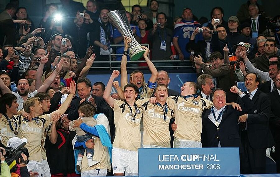 Nach 72 Minuten war es (natürlich) Arshavin der mit dem Ball am Fuß bis zur Strafraumgrenze vordrang und mit einem frechen Pass durch die Beine seines schottischen Bewachers den schnellen Denisov in Szene setzte. Der 1,76 Meter große Offensivmann verwandelte kalt ins kurze Eck, Rangers-Schlussmann Alexander war chancenlos. Die gespenstige Stille, die der Treffer beim riesigen schottischen Anhang auslöste, übertrug sich auf die Spielweise der Rangers. Verzweifeltes Aufbäumen und unbedingter Siegeswille sehen anders aus, beziehungsweise sind in den vergangenen Jahren von anderen Insel-Mannschaften (siehe Liverpool) wesentlich effektiver inszeniert worden. Der eingewechselte Nacho Novo hatte kurz vor dem Schlusspfiff noch die beste Chance zum Ausgleich, doch der Spanier holzte das Spielgerät in den jubelnden russischen Anhang auf der Tribüne im City-of-Manchester-Stadium. Für den Beginn der ganz großen Petersburger Party sorgte in der vierten Minute der Nachspielzeit Konstantin Zyryanov, der auf Zuspiel von Tekke nur noch ein vollenden musste. Schiedsrichter Fröjdfeldt aus Schweden, der sich mit seinem radikal dunklen Teint aussichtsreich für das Solarium-Gesicht des Jahres 2008 bewarb, wollte kein Spielverderber sein und pfiff nach dem zweiten Treffer ab. Die Petersburger sind ein würdiger Uefa-Cup-Sieger, eben weil ihre Spielweise sympathisch nüchtern daher kam und Dick Advocaats Taktik des schnellen Überfalls über die Außen für Galaauftritte gegen Leverkusen (4:1) und München (4:0) sorgte. Die Rangers müssen sich fragen, ob sie sich bei der Wahl ihrer Spielweise nicht doch an den eigenen stürmischen Fans orientieren hätten müssen: Die trinkfesten Glasgower hatten bereits in den frühen Morgenstunden die Theken in der nordenglischen Industriemetropole eingenommen. Modernes Pressing nennt man so etwas.