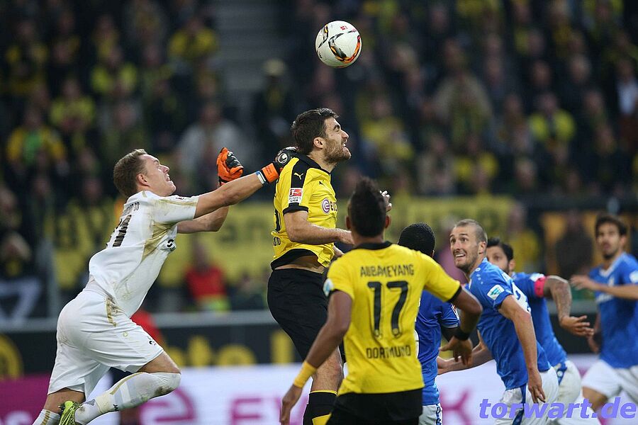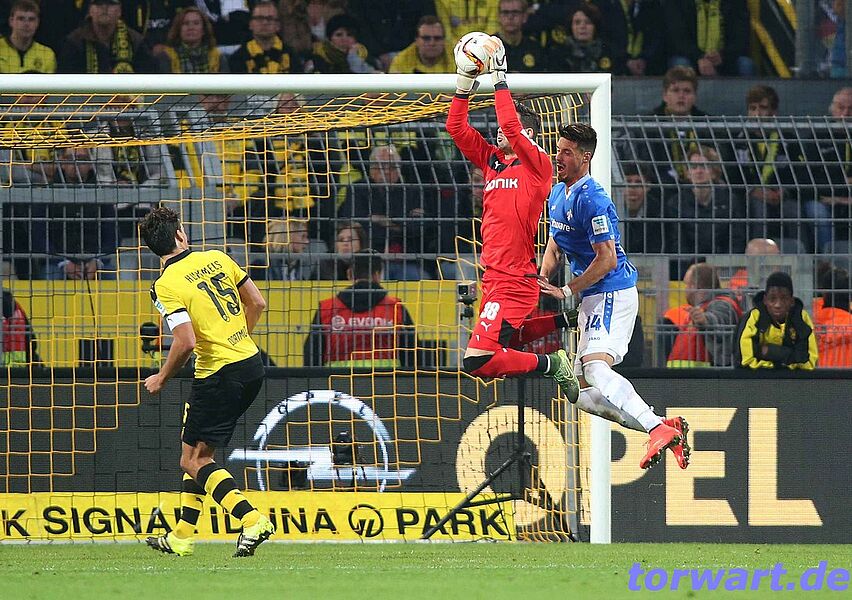 Auch wenn die Partie höchst einseitig von den Hausherren geführt wurde – sonderlich viel zu tun gab es für Darmstadts Schlussmann Christian Mathenia dennoch nicht. So blieb in der ersten Halbzeit gerade einmal eine Parade in Erinnerung, als er bei einem Schuss von Weigl aus rund 22 Metern rechtzeitig abtauchte und parierte. Denn die Dortmunder versuchten es zwar häufig, doch zumeist fand die „Torfabrik“ nicht den Weg in Richtung des Gästetores. Dies sollte sich erst in der zweiten Halbzeit ändern: Aubameyang wusste zwei sich ihm bietende Chancen zu nutzen und die Partie zu drehen. Für Mathenia gab es hier nichts zu halten, auch wenn er beim zweiten Tor noch mit Fuß dran war.
