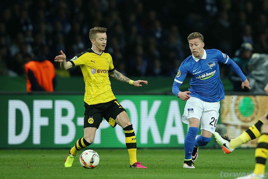 Roman Bürki/ Borussia Dortmund: Im Gegensatz zu seinem Berliner Kollegen hatte Roman Bürki im Dortmunder Tor in den gesamten 90 Spielminuten, nur einen Torschuss abzuwehren. Kurz vor der Halbzeit hatten die Berliner die besten Chance in ihrem Spiel. Nach einer Hereingabe von Weiser, kam Hegeler aus wenigen Metern zum Schuss. Der direkte Abschluss war jedoch zu unplatziert und der Schweizer hatte keine Probleme durch sein exzellentes Stellungsspiel, den Ball sicher zu parieren. Erwähnenswert war auch das Mitspielverhalten des Dortmunder Torwarts. Fußballerisch wirkte er gewohnt sicher und ausgereift. Im Laufe der 90 Minuten spielte Bürki nur vier Fehlpässe. Fazit: Ein sicherer und konzentrierter Dortmunder Torwart.