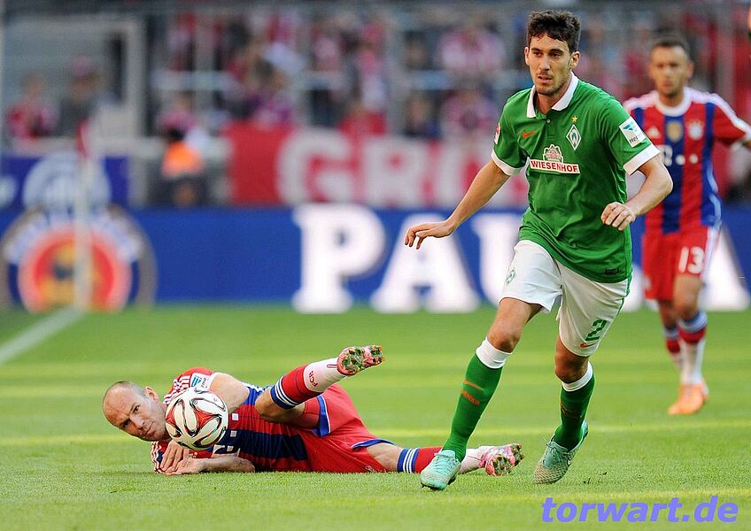 Raphael Wolf/Werder: Bayern begann gewohnt dominant und mit überragender Ballbesitzquote, doch wirkliche Torchancen gab es zunächst nicht. Bremen agierte mit einer massiven Defensive, was zumindest in den ersten 20 Spielminuten half. Dann aber war es Philipp Lahm, der das Eis brach: Mit einem Dropkick-Aufsetzer im 16er ließ er dem Bremer Keeper Wolf keine Abwehrchance. Von da an trafen die Gastgeber nach Belieben: Erst erhöhte Alonso mit einem Freistoß, als er den Ball unter der Mauer durch ins Tor bugsierte, dann traf Müller per Strafstoß, ehe Götze mit einem sehenswerten Schlenzer bereits vor der Pause das 4:0 erzielte. Nach der Pause ließen die Bayern zunächst beste Möglichkeiten ungenutzt, ehe sie das Ergebnis trotz angezogener Handbremse noch nach oben schraubten: Lahm traf nach einer Traumkombination und Götze hämmerte den Ball aus Strafraum-Entfernung unhaltbar in den Kasten. Wolf, der sich kaum wirklich auszeichnen konnte, blieb bei allen sechs Gegentreffern ohne Abwehrmöglichkeit.