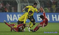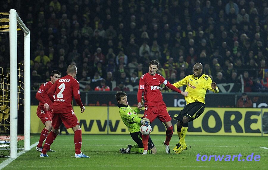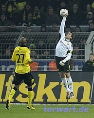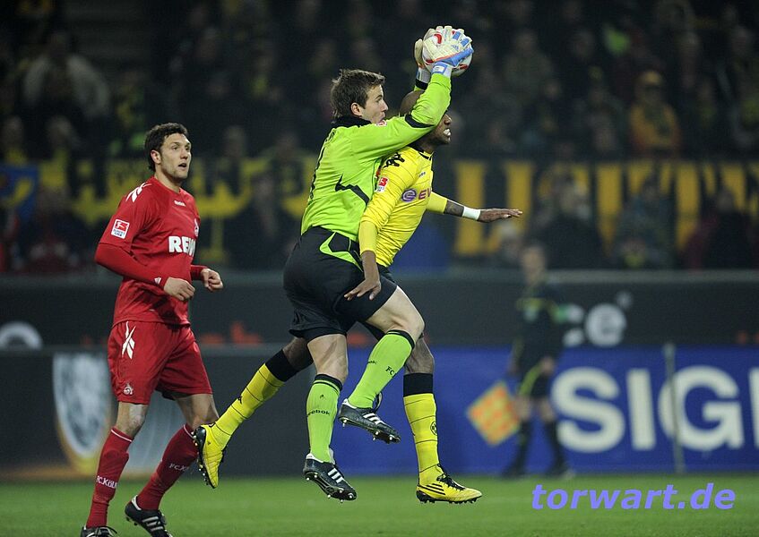Michael Rensing / Köln: Erst Manuel Neuer, dann Thomas Kessler und jetzt Michael Rensing: Das Westfalenstadion und der BVB motivieren scheinbar alle gegnerischen Keeper zu Topleistungen. Was Michael Rensing am Freitagabend aber bot, setzte dem Ganzen noch die Krone auf. Mit unzähligen Paraden, von denen mehrere das Prädikat „weltklasse“ verdienten, brachte er den Dortmunder Angriff schier zu Verzweiflung. Ob mit tollen Flugeinlagen, wie z.B. gegen Großkreutz (61.), mit fantastischen Reflexen, wie gegen Santana (31., 71.) oder Subotic (57.), oder im Nachfassen, als er eigentlich schon geschlagen war, wie in der 74. Spielminute gegen Lewandowsi, der Kölner Schlussmann verhinderte mehrfach sicher geglaubte Tore. Nur in der 44. Spielminute war er machtlos, als Lewandowski mit einem tollen Schuss das entscheidende Tor erzielte.