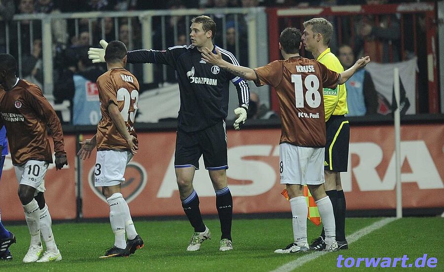 Manuel Neuer / Schalke: Auch wenn St.Pauli gefällig mitspielte und schon in Durchgang eins gute Chancen hatte, brauchte Schalkes Schlussmann im ersten Durchgang nicht einmal wirklich eingreifen. Ernst wurde es für ihn erst im zweiten Abschnitt, als vor allem Takyi und Kruse mehrfach gefährlich zum Abschluss kamen. Manuel Neuer aber blieb zunächst souverän und wehrte die Schussversuche sicher ab. Überrascht wurde er dann in der 65. Minute, als ein Freistoß von Kruse aus großer Entfernung ins lange Eck segelte. Neuer hatte mit einem Eingreifen eines St.Paulianers gerechnet, weswegen er zu spät ins rechte Eck ging und den Ball nicht mehr erreichte. Er hatte allerdings Glück, dass Schiri Aytekin in dieser Szene berechtigt auf Abseits entschied.