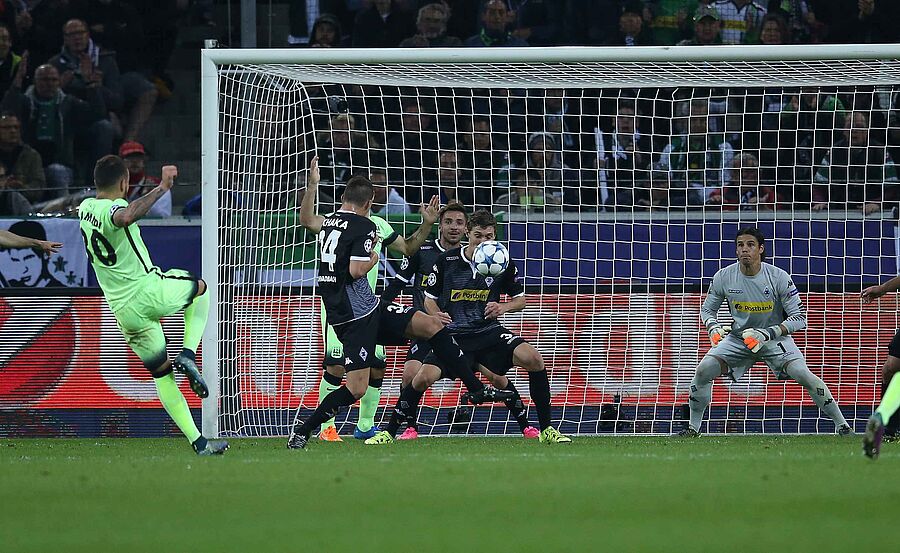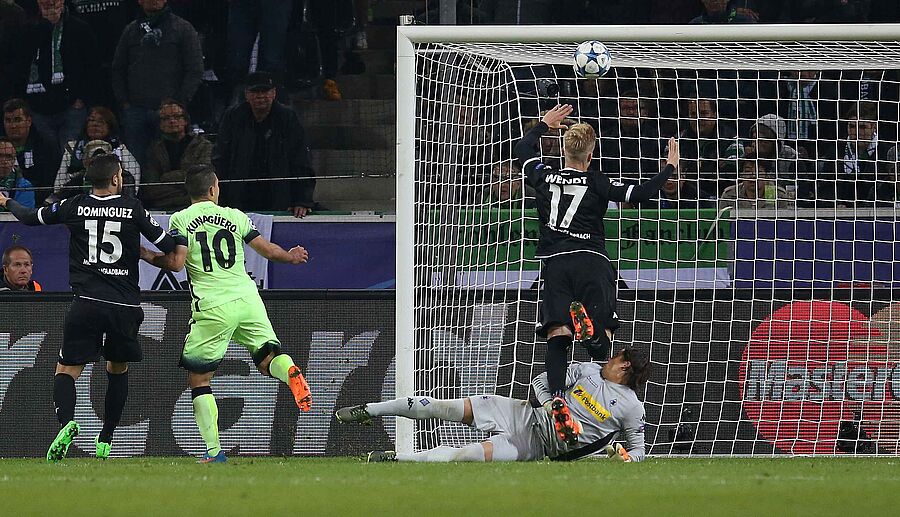 im Fünfmeterraum einen Ball von Sergio Aguero abwehren. Dabei stieß der Schweizer
