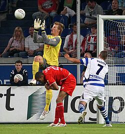 Da war er nun wieder: Mathias Hain, Keeper der Kicker aus St. Pauli. Dienstälteste Nummer 1 der 2. Liga und Mitwirkender beim erfolgreichen Saisonauftakt der Hamburger. Sogar vom Aufstieg wurde hinter vorgehaltener Hand schon getuschelt. Noch einmal in der 1. Liga zu spielen wäre für Hain, mittlerweile schon 36 Jahre alt, sicherlich ein schöner Karriereausklang. Doch dafür mussten die Hamburger erst einmal beim direkten Konkurrenten Arminia Bielefeld bestehen. Und Spiele gegen Bielefeld sind für Matthias Hain immer eine ganz besondere Angelegenheit, schließlich spielte der Hamburger Schlussmann beinahe 8 Jahre auf der Alm, war Kapitän der Mannschaft und wurde bei seinem Abschied begeistert von den Fans zum Spieler der Saison gewählt. Dass er noch immer höchstes Ansehen in Westfalen genießt, bewies neben den ausufernden „Matze Matze“-Fanchören auch die Tatsache, dass ihm prominente Begleitung zur Seite gestellt wurde. Yannick Schonz, Sohn des allseits beliebten Bielefelder Zeugwarts Rainer Schonz, hatte sich die Hand des Pauli-Keepers geschnappt und geleitete ihn routiniert aufs Spielfeld. Hain zeigte sich dementsprechend höchst erfreut, denn auch mit dem Bielefelder „Nachwuchs“ verbinden ihn viele Erinnerungen: "Wir haben Yannick in der Kabine mit großgezogen, da musste jeder mal Vaterpflichten übernehmen.“