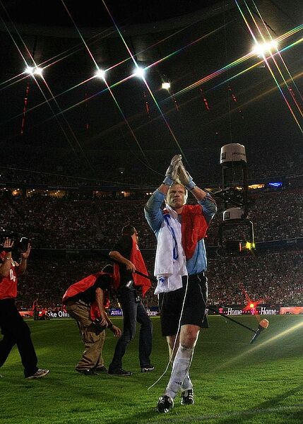Mit viel Emotionen und sehr viel Applaus hat sich Oliver Kahn in der Münchner Allianz Arena von der aktiven Laufbahn als Torwart verabschiedet. Mit einem würdigen Abschiedsfest in seinem letzten Spiel für den FC Bayern München gegen die deutsche Nationalmannschaft (1:1 Endstand) feierte Kahn in der ausverkauften Arena mit zahlreichen bekannten Gesichtern aus dem Fussballbereich. Als Kahn in der 75. Spielminute für seinen Nachfolger Michael Rensing ausgewechselt wurde, sprach ein sehr gerühter Oliver Kahn: "Ich glaube, das war das Größte, was ich in meiner Karriere erlebt habe. Und das als Abschluß." Minuten nach der Auswechslung feierten die Fans im Stadion den "Titan" mit "Olli, Olli"-Sprechchören. Der letzte Spieler, der Kahn bezwungen hat, war Piotr Trochowski. Der HSV-Spieler schon den Ball an Kahn vorbei in die lange Ecke (33.). Miroslaw Klose erzielte das 1:1 für den FC Bayern (51.) gegen Tim Wiese, der nach der Halbzeit das Tor für die Nationalelf hütete. Kahn zeigte in diesem Spiel nochmals seine Extraklasse als er in der ersten Halbzeit einige sehr gute Chancen der Nationalspieler vereitelte. Kahn wurde am Rande des Spiels noch zum Ehrenspielführer des FC Bayern ernannt.