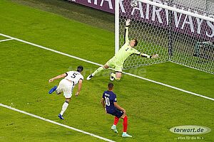 Mit Lloris und Neuer sahen wir zwei international sehr erfahrene Torhüter. Beide Torhüter wurden wenig geprüft. Neuer war beim Gegentreffer weitestgehend machtlos. Zuvor war die deutsche Abwehr beim Einwurf sehr ungeordnet und die Abwehrkette war weiter auseinandergerissen. Neuer stand aus meiner Sicht in einer halboffenen Stellung etwas zu weit vor dem 1. Pfosten. Dies hatte zur Folge, dass Neuer nach der scharfen Hereingabe von Hernandez mehr Zeit benötigte, um wieder in die optimale Position zur Torverteidigung zur kommen. Für Hummels war es sehr schwer, den Ball kontrolliert zu klären, da der Ball unglücklich aufsprang und der einschussbereite Mbappé hinter ihm lauerte.