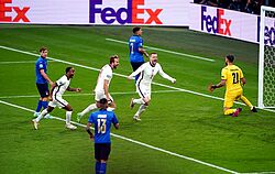 Im Spiel wurden er und Italien nach 2 Spielminuten kalt erwischt. Auf den ersten Blick konnte Donnarumma gegen den platzierten Dropkick von Shaw am Fünfer-Eck wenig machen. Er zeigte dabei auch keine Reaktion auf den wuchtigen Schuss. Nach der Flanke auf Shaw passte Donnarumma noch seine Position gut an. Eine Reaktion auf einen Schuss in beide Ecken des Tores wäre noch möglich gewesen. Allerdings kam Donnarumma zu spät zum Stehen. Damit war es nicht möglich eine Reaktion auf den am Innenpfosten des kurzen Ecks auszuführen.