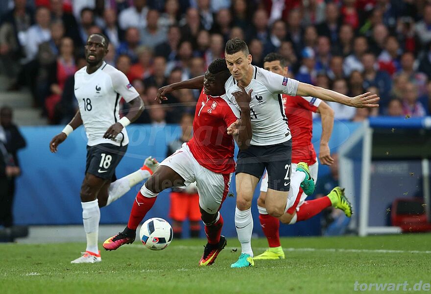 Yann Sommer / Schweiz: Yann Sommer musste in der ersten Halbzeit bei einem Fernschuss von Paul Pogba zur Stelle sein. Der französische Superstar schloss aus Rund 20 Metern aus zentral Position ab und zwang Sommer zu einer ersten Parade. Die unberechenbare Flugkurve des Balles stellte Sommer vor einer Herausforderung. Der Schweizer war sich in dieser Situation nicht sicher, ob er den Ball fangen oder eher doch fausten bzw. direkt abwehren sollte. Sommer ließ den Ball nach oben abklatschen, sodass dieser die Latte tuschierte und hinter das Tor sprang. Erste Probleme für den schweizer Keeper, der bisher eine starke Europameisterschaft spielte. Auch in der 17. Spielminute war es Pogba der Sommer mit einem Distanzschuss herausforderte. Nur dieses Mal wäre Sommer völlig machtlos und ohne Abwehrchance gewesen. Die Latte rettete die Schweiz vor einem Gegentor als Pogba aus rund 30 Metern mit links abzog und der Ball mit einer ungeheuren Geschwindigkeit auf das Tor von Yann Sommer zuflog. Der Ball tuschierte das aus Sommers Sicht rechte obere Kreuzeck. Erneut Glück für die Schweizer und Sommer.