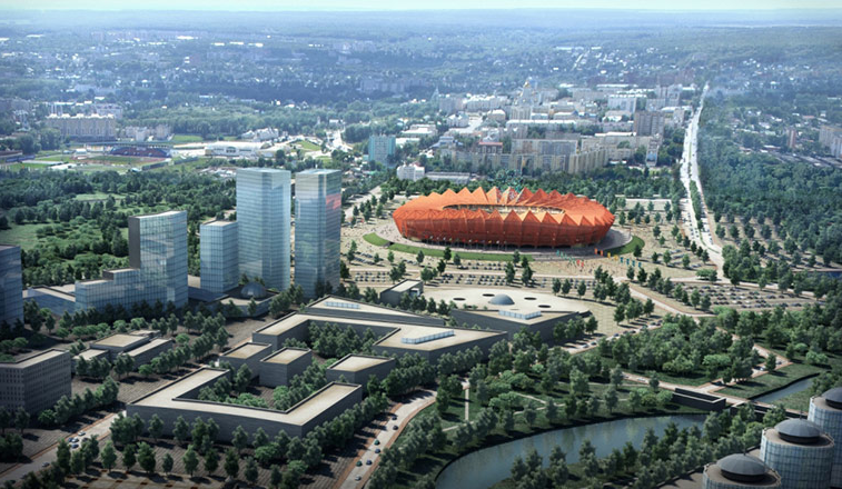 Die Entscheidung über die Errichtung des Stadions in Saransk wurde getroffen, noch bevor es bekannt war, dass Russland der Gastgeber der Fußball-Weltmeisterschaft sein wird. Zu Beginn der WM 2018 soll das Stadion 44.442 Sitzplätze besitzen. Nach Abschluss des Turniers soll das Stadion auf eine dauerhafte Kapazität von 25.000 Plätzen zurückgebaut werden. Nach vorläufigen Planungen soll die Form und Farbe der neuen Arena der roten Sonne in der Flagge von Mordwinien ähneln.