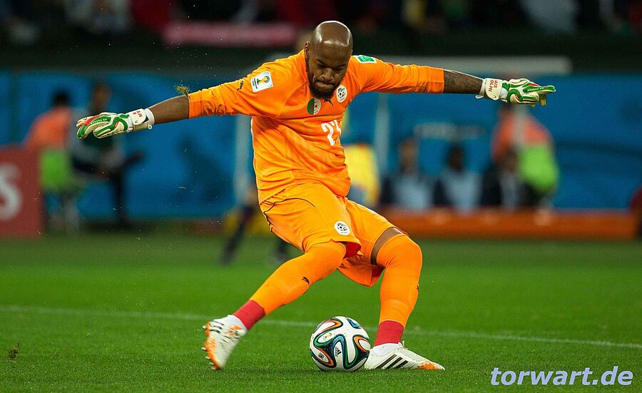Rais M'Bohli / Algerien: Rais M'Bolhi galt als einer der Unbekannten im algerischen Team. Obwohl die deutsche Nationalmannschaft schnell seine Schwäche bei flachen Torschüssen erkannte, machte sie draus viel zu wenig.