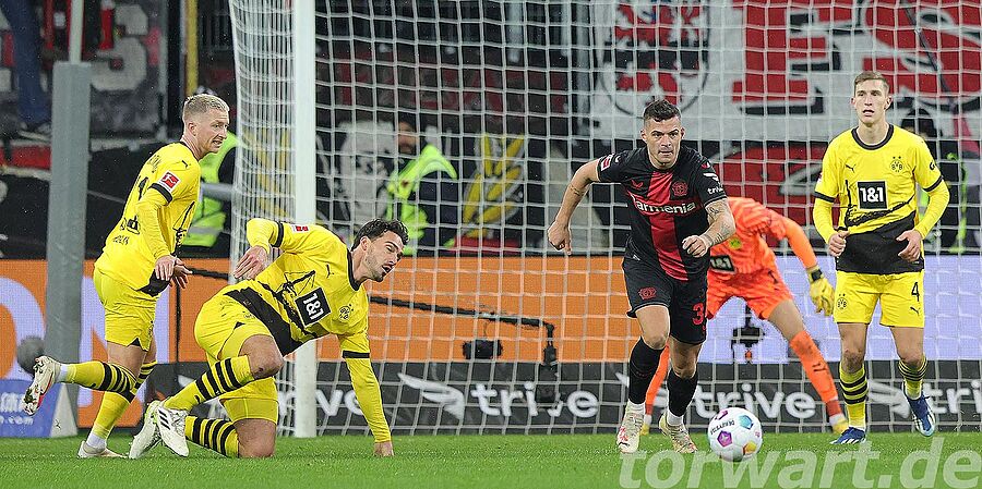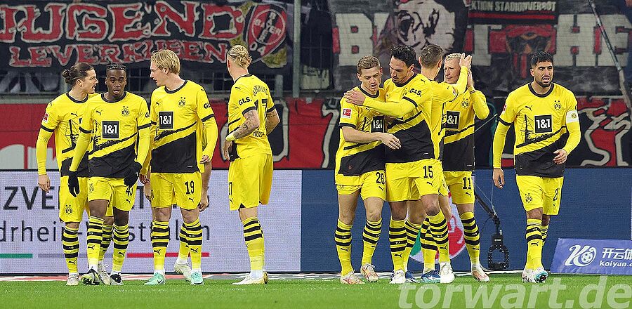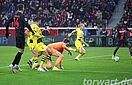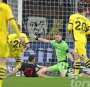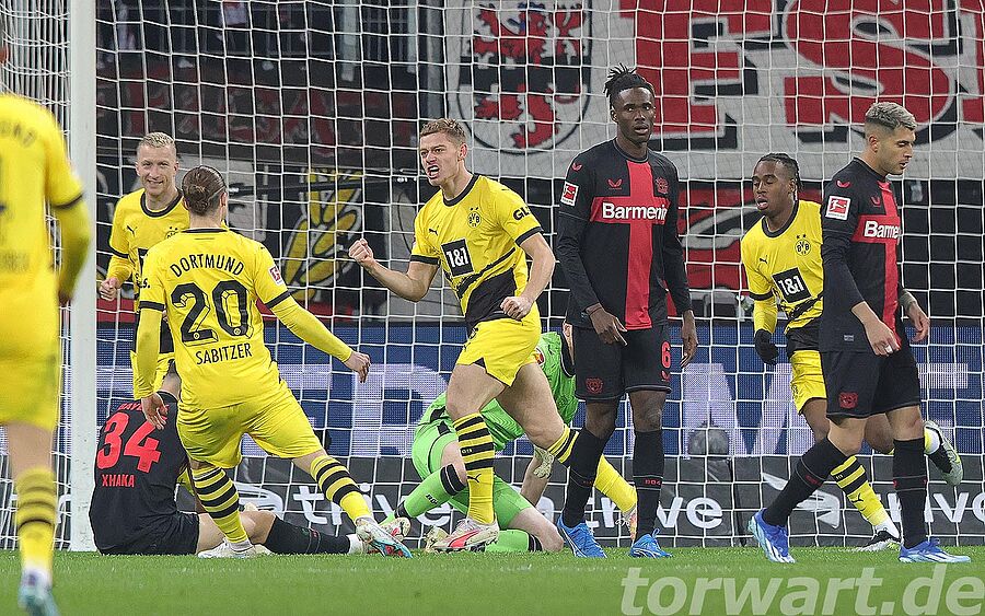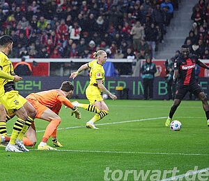 Die Werkself brauchte einige Minuten, um in der Partie anzukommen. Vor allem der frühe Rückstand zeigte Wirkung. So kam der Gastgeber erst nach rund 20 Minuten zu den ersten nennenswerten Offensivaktionen, doch wurde es dabei zunächst noch nicht gefährlich für Gregor Kobel. Der Torhüter musste erst in den letzten 10 Minuten der zweiten Hälfte eingreifen. Vor allem einen Freistoß von Grimaldo konnte er dabei gut entschärfen. In der Nachspielzeit erzielte Wirtz den Ausgleich, doch stand zuvor Boniface im aktiven Abseits, sodass der Treffer nicht zählte.