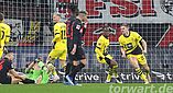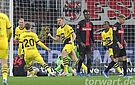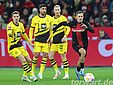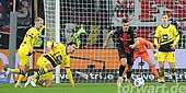 In der 4. Minute gingen die Gäste sehr früh durch Ryerson in Führung. Der BVB blieb bei einem Angriff lange in Ballbesitz und spielte diesen geduldig und technisch sauber aus. In der Folge kam Ryerson aus halblinken 6 Metern zum Abschluss und spitzelte die Kugel am herauseilenden und sich breit machenden Hradecky vorbei in die lange Ecke. Der Keeper war hierbei chancenlos. Im weiteren Verlauf der ersten Hälfte hatte die Borussia zwar wieder einmal gute Umschaltsituationen, doch wirklich gefährlich wurde es für den sehr aufmerksam agierenden Leverkusener Torhüter nicht.