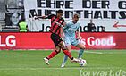 Nach der Pause drückten wieder schnell die Gastgeber, die nunmehr auch die Kölner Defensive mehrfach stark unter Druck setzen konnten und gute Abschlüsse zu verzeichnen hatten. Allerdings hatte die Kölner Mehrfach noch die Beine oder andere Körperteile dazwischen und retteten damit in höchster Not, während Schwäbe wohl mehrfach geschlagen gewesen wäre. Dieses Muester zog bis in die Schlussphase hinein. Kurz vor dem Ende glich dann Nkounkou aus. Nach einer Balleroberung unmittelbar vopr dem Kölner Strafraum gelang den Hessen eine Spielverlagerung über Aaronson zu Nkounkou, der aus links versetzten 12 Metern flach in die lange Ecke schoss. Schwäbe stand dabei gut, doch kam er gegen den wuchtigen Abschluss nicht mehr schnell genug zu Boden.