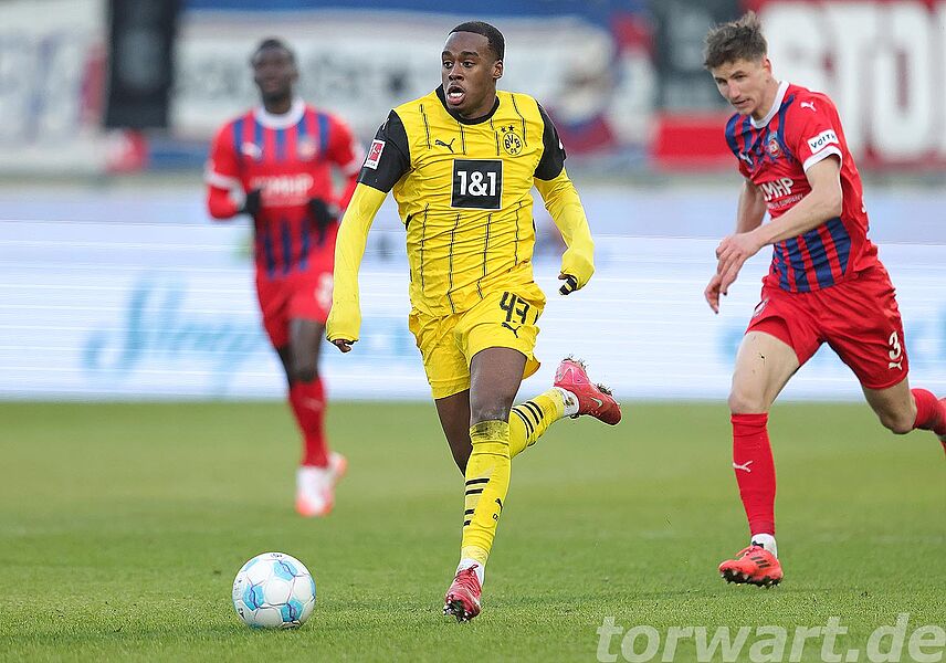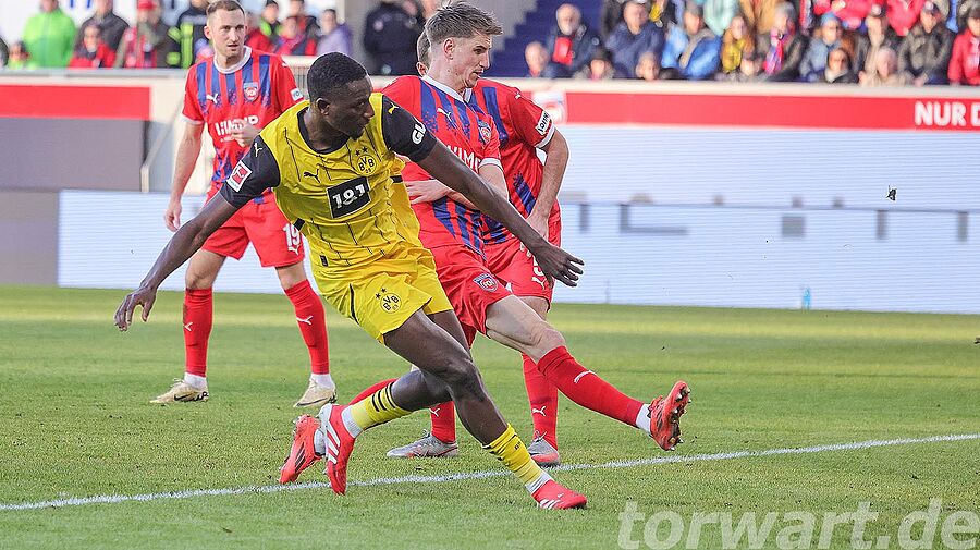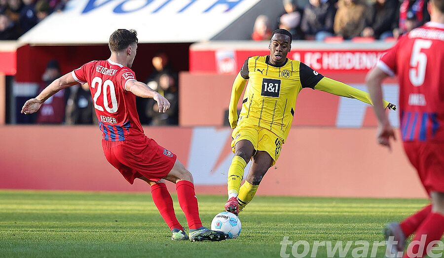 Nach einer Stunde stellte der eingewechselte Beier auf 0:2. Gittens kam links in Strafraumnähe an den Ball, ging noch ein paar Schritte, spielte zu Bensebaini und legte scharf auf den ersten Pfosten, wo Beier einlief und die Kugel in die lange Ecke drückte. Müller deckte die kurze Ecke ab und konnte dadurch nicht mehr reagieren. Viel mehr passierte vor dem Heidenheimer Tor nicht mehr.