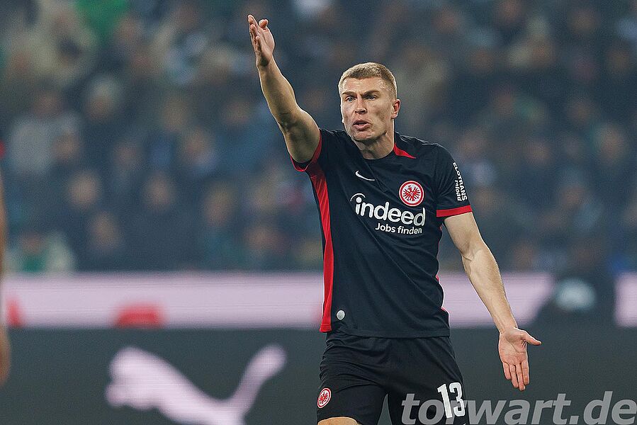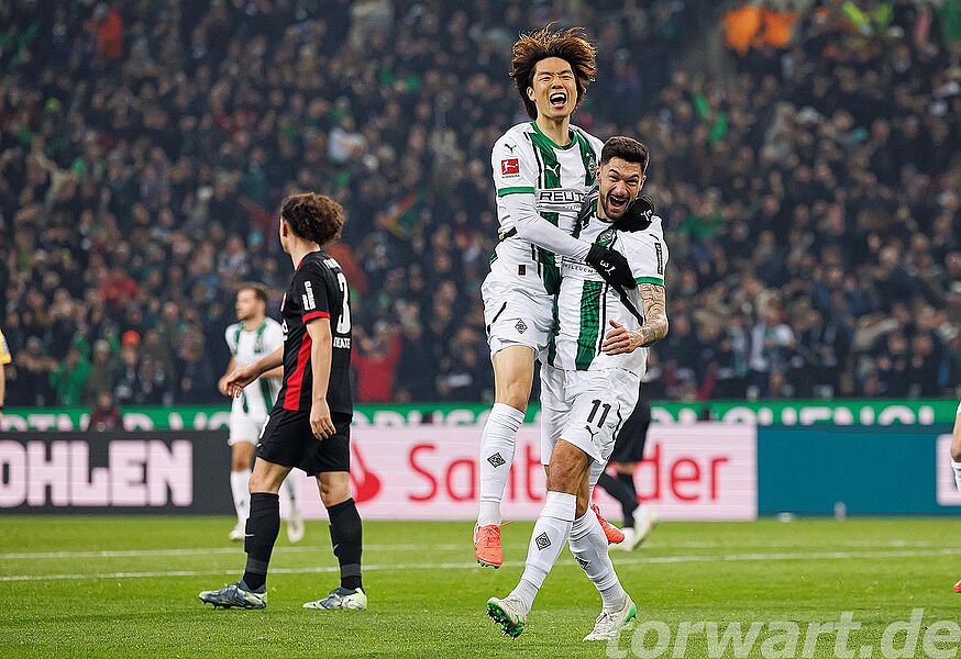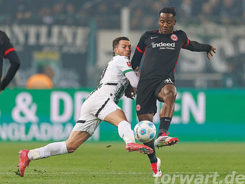 Die Gladbacher Freude über die Führung hielt nicht lange an, denn in der 31. Minute erzielte Ekitiké den Ausgleich. Larsson schoss aus zentralen 15 Metern auf das Tor, wobei der Ball noch gravierend abgefälscht wurde. Nicolas reagierte herausragend und lenkte den Schuss noch an die Latte. Von dort aber prallte der Ball direkt vor die Füße des Torschützen, der nur noch abstauben musste. Wenig später traf Knauff nach einer Hereingabe nur den Pfosten.