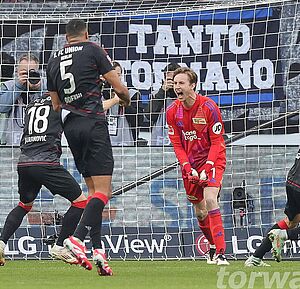 Frederik Rönnow pariert in der Nachspielzeit einen Elfmeter und rettet Union den Sieg (foto: firo)