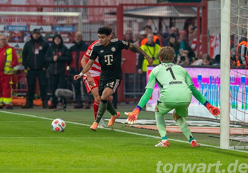 Frederik Rönnow aus kurzem Winkel von Luis Diaz überwunden (foto: firo)