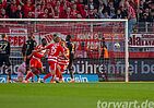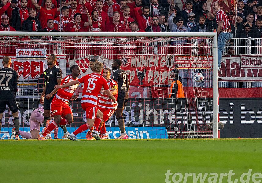 Die Bayern brauchten eine halbe Stunde, um im Spiel anzukommen. In der 38. Minute glich Diaz aus, als er von der linken Grundlinie und einer Entfernung von 5 Metern den Ball über Rönnows rechte Schulter hinweg in das Tor jagte. Der Keeper rechnete hierbei mit einer scharfen Hereingabe, sodass er einen tiefen Schwerpunkt wählte und schon den Schritt von der Linie weg machte, wodurch die Tür überhaupt ein wenig aufging, und dies nutzte Diaz.