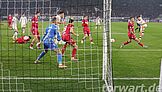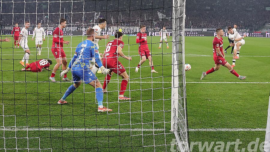 Anschließend wurde es deutlich ruhiger. In der Nachspielzeit bekamen die Gastgeber einen Strafstoß zugesprochen. Tabakovic schoss auf die linke Ecke, doch war Schwäbe in die richtige Ecke unterwegs und parierte ganz stark. Im Zuge des anschließenden Eckstoßes traf Sander zur Gladbacher Führung aus halblinken 10 Metern. Direkt vor Schwäbe fälschte Martel noch in die rechte Ecke ab. Für Schwäbe war somit nichts mehr auszurichten.