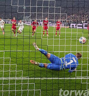 Marvin Schwäbe verhindert mit einem parierten Elfmeter einen noch frühere Rückstand (foto: firo)