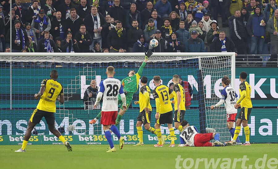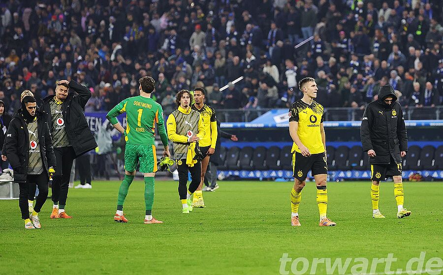 Auch wenn der BVB mehr vom Spiel hatte, war der HSV mit zwei Chancen im ersten Durchgang durchaus das gefährlichere Team. Zunächst konnte Kobel in der 20. Minute sicher parieren. Kurz vor dem Seitenwechsel hatte Kobel bei einem Abschluss aus 10 Metern Glück, als der Ball an die Latte flog. Kobel wäre nicht herangekommen.