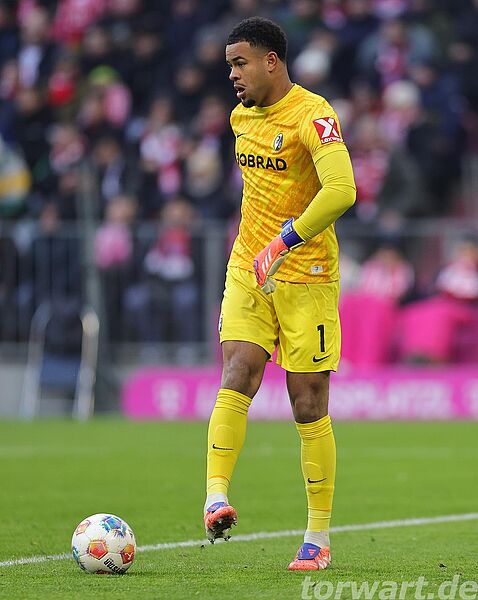 Noah Atubolu musste gegen die Bayern rund um Olise 6-Mal hinter sich greifen (foto: firo)
