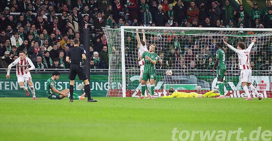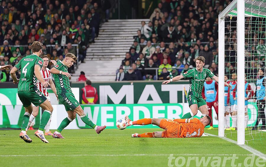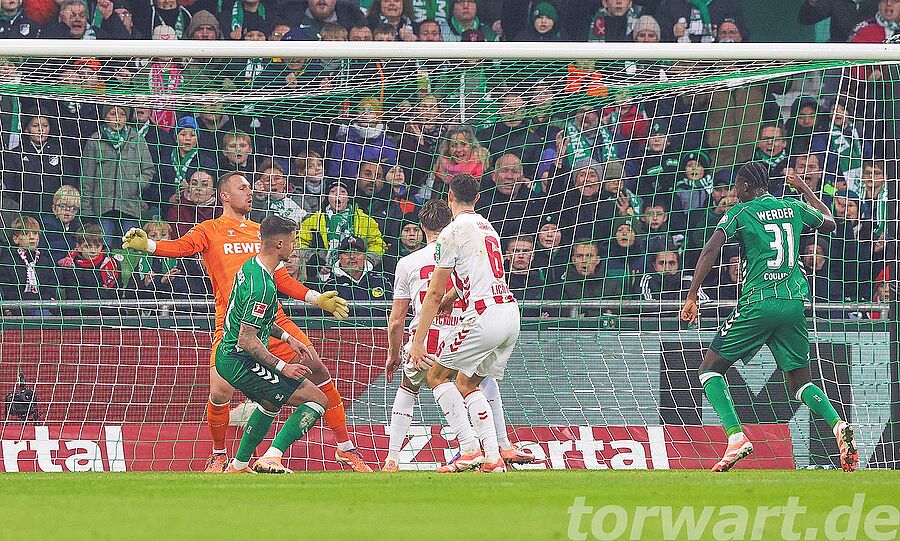 Kurz vor und kurz nach der Pause hatte Werder jeweils gute Möglichkeiten auf das 2:0, aber immer wieder war es der Kölner Torwart, der das Gegentor mit starken Paraden verhindern konnte. Danach aber kam von Werder in der Offensive nur noch wenig. Schwäbe erlebte daher nunmehr sehr viel Ruhe und sah noch den wichtigen Ausgleich seiner Mannschaft.