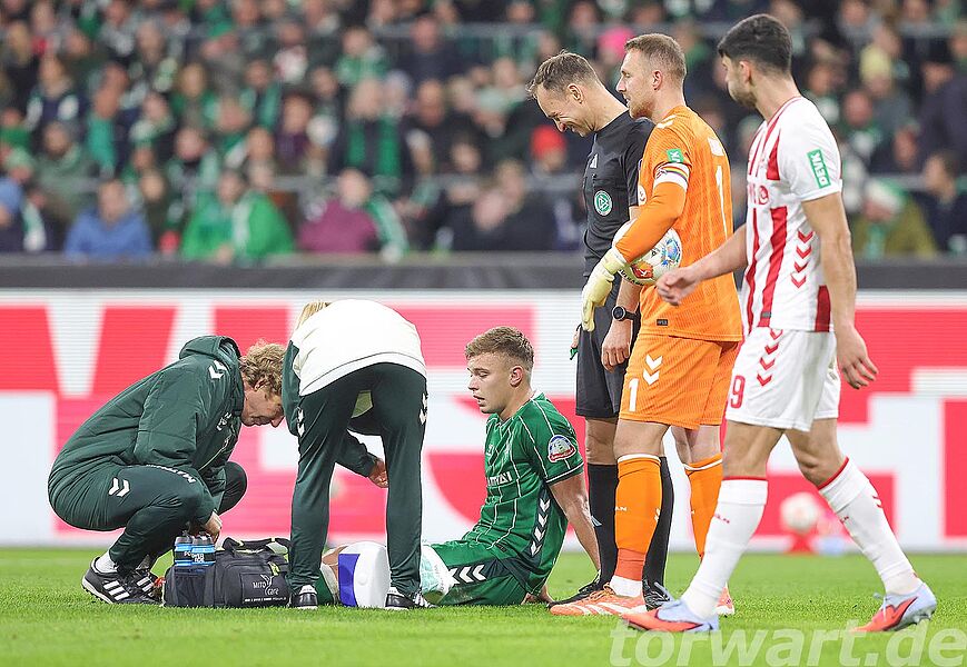 In der 21. Minute ging Werder in Führung. Nach einem zunächst abgewehrten Eckball kam Stage zu einer Flanke in die Mitte von der rechten Strafraumecke. Dort lief Friedl ein und traf aus vier Metern ins Tor. Für Schwäbe war es zu riskant, die Linie zu verlassen. Gleichzeitig schaffte es Schwäbe aufgrund der kurzen Entfernung nicht mehr, die Hand richtig hinter den Ball zu bekommen.