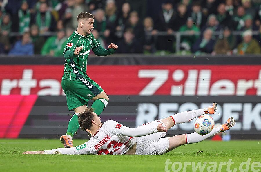 Stark bekommt seine Beine nicht zu, Backhaus ohne Chance - Bremen verspielt den Sieg gegen Köln (foto: firo)
