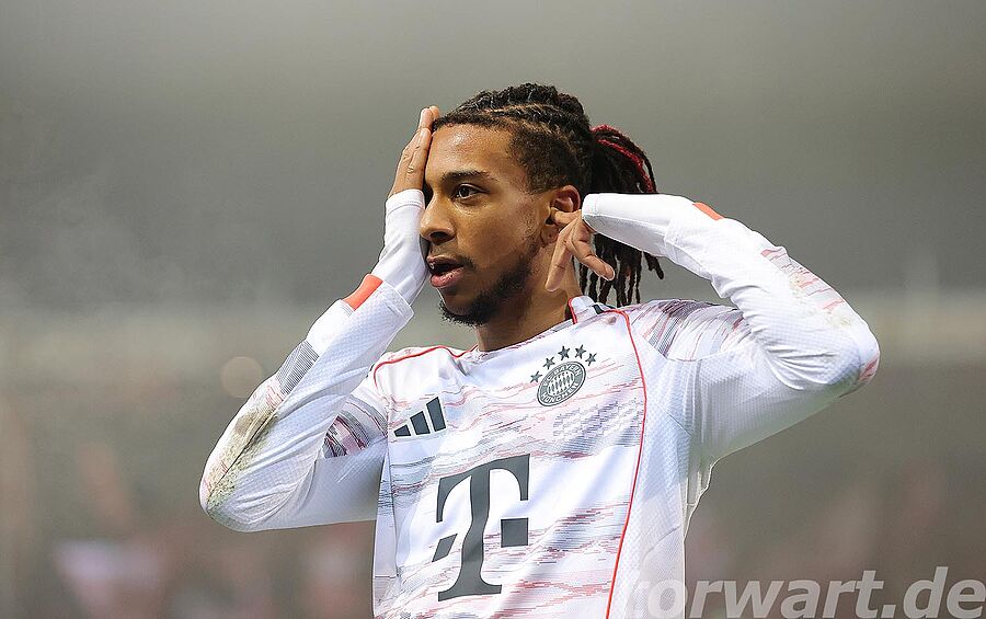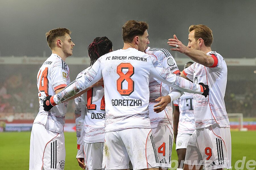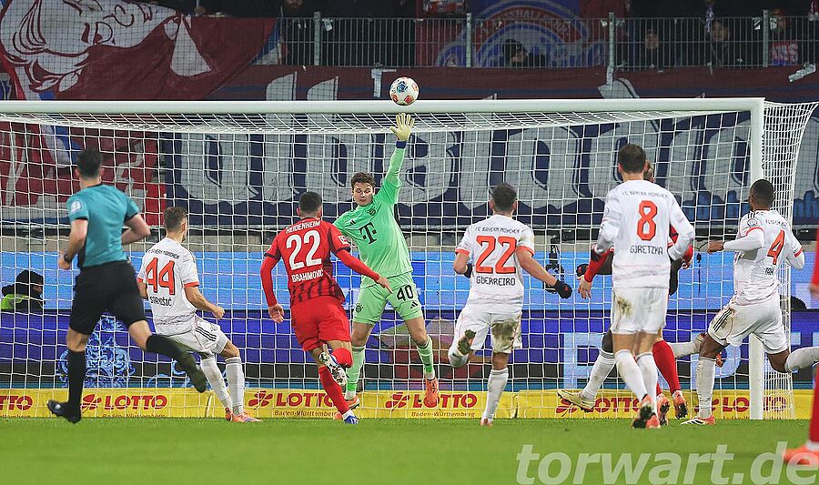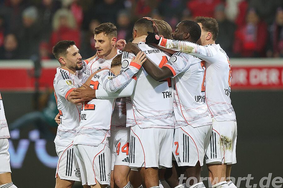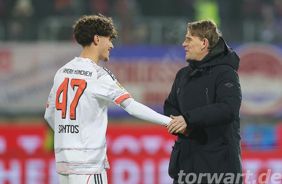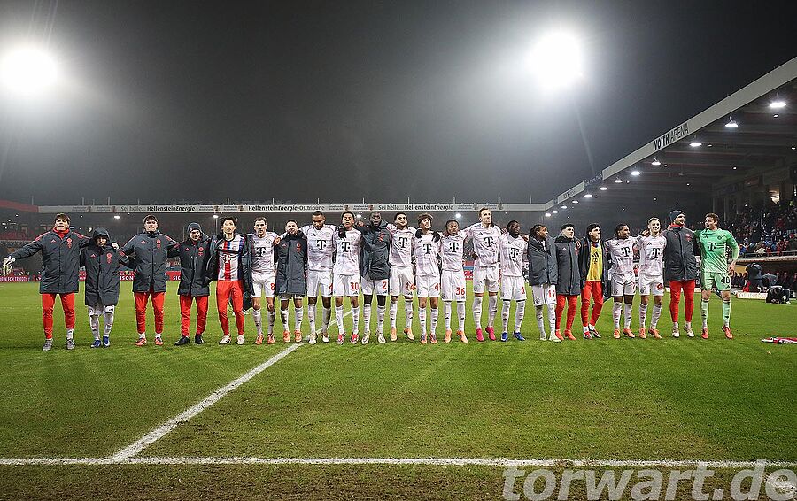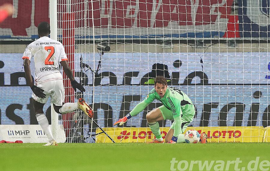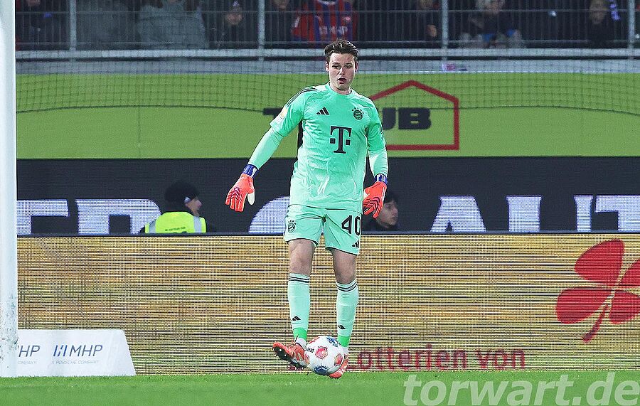 Jonas Urbig vertrat den verletzten Manuel Neuer, der mit einem Muskelfaserriss ausfiel. Dabei erlebte er eine sehr ruhige erste Halbzeit. Die Bayern hatten 72 % Ballbesitz, und dies zeigte sich auch am Spielgeschehen. Die Gastgeber versuchten es, wenn überhaupt, über schnelle Gegenstöße. Einer davon wurde in der 28. Minute gefährlich, wenngleich daraus wiederum kein Abschluss resultierte.
