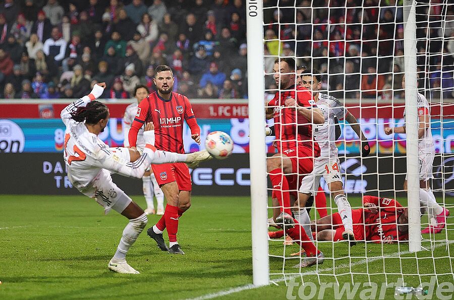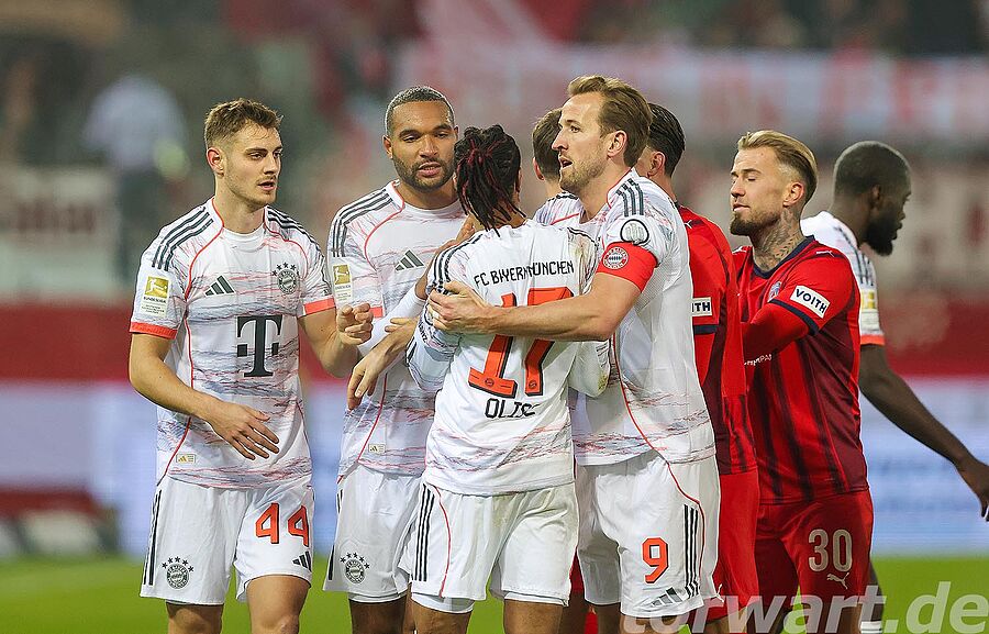 In der 53. Minute hatte Kane eine große Gelegenheit, als er aus halbrechten 10 Metern die lange Ecke anvisierte, aber nur den Außenpfosten traf. Wenig später reagierte der Heidenheimer Torwart gut und parierte. Im Anschluss kam von den Bayern kaum noch eine richtige Aktion in der Offensive. In der 86. Minute sorgte Diaz für die endgültige Entscheidung. Stanisic wurde rechts im Strafraum bedient und legte von der Grundlinie in die Mitte, wo Diaz einlief und per Kopfball traf. Ramaj deckte zunächst den ersten Pfosten ab und versuchte dann noch in die Tormitte zu kommen, doch an den Abschluss selbst kam er nicht mehr heran.