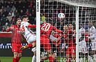 Die erste Chance der Partie hatten die Bayern in der 12. Minute. Diesen Versuch konnte Ramaj aber abwehren. Etwas unglücklich sah der Torwart drei Minuten später aus. Ein Eckstoß von rechts wurde scharf auf den zweiten Pfosten geschlagen und dort von Tah aus spitzem Winkel auf das Tor geköpft. Dabei hatte Ramaj keine richtige Reaktionszeit, bekam aber noch den Unterarm an den Ball, sodass die Kugel in die Mitte prallte, wo sich Stanisic im Luftduell durchsetzen und aus zwei Metern einköpfen konnte. Ein Fehler des Keepers lag hierbei jedoch nicht vor.