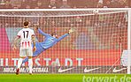 Viermal wurde Grabara überwunden - nicht immer so kunstvoll wie hier beim 0:1 von Treu (foto: firo)