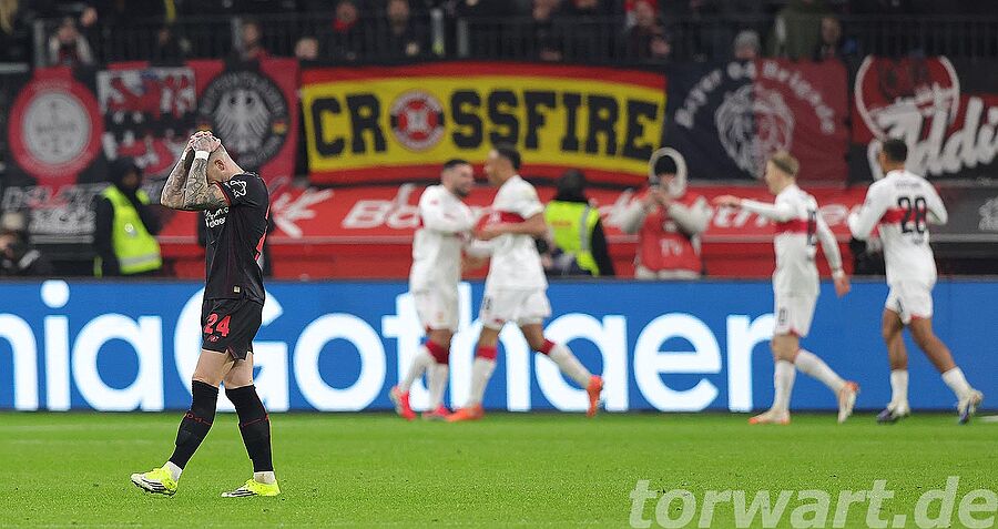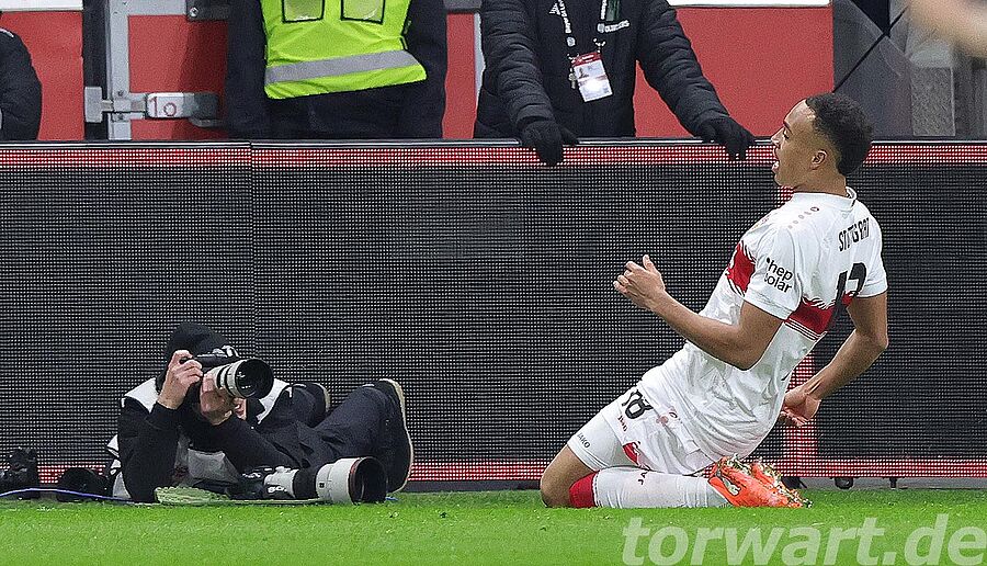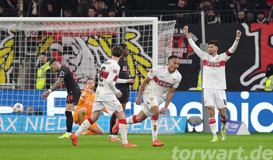 Nach einer knappen halben Stunde bekamen die Gäste noch einen Strafstoß zugesprochen, den Maximilian Mittelstädt sicher verwandeln konnte, indem er flach in die linke Ecke einschoss. Flekken wiederum bewegte sich in die andere Ecke und war somit machtlos. Kurz vor der Pause legte der VfB noch zwei weitere Tore nach. So traf Leweling zunächst aus rechts versetzten 17 Metern flach in die rechte Ecke. Flekken richtete sich kurz zuvor in Richtung der langen Ecke aus und verlagerte auch seinen Körperschwerpunkt für eine Aktion dorthin. Gegen die eigene Ausrichtung kam der Keeper nicht mehr nach unten zum Ball. Keine zwei Minuten später lief Undav noch auf den aufrückenden Flekken zu, wobei der Stürmer nur noch Begleitschutz erhielt. Bei dem Flachschuss in die linke Ecke kam Flekken nicht mehr an das Spielgerät heran.