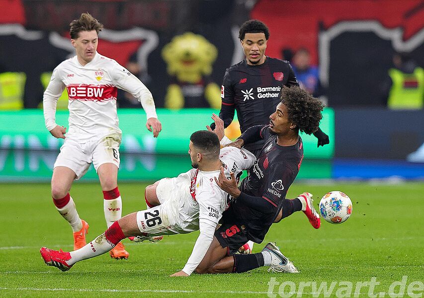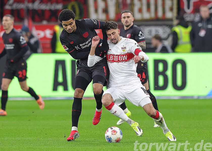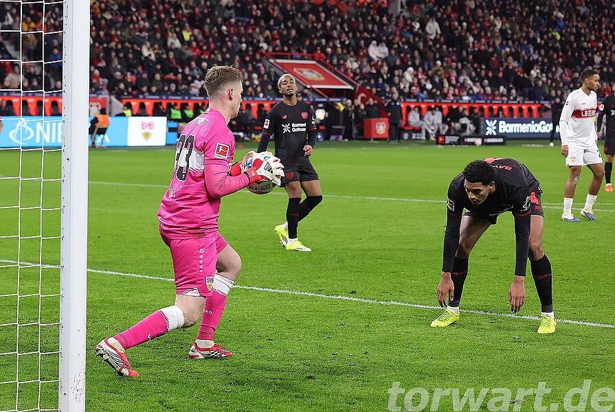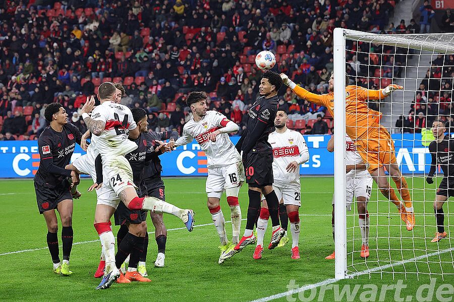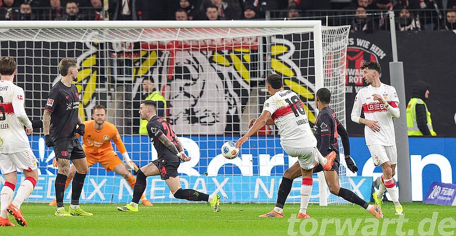 In der ersten halben Stunde kam von Leverkusen so gut wie gar nichts. Dadurch musste auch Alexander Nübel zunächst nicht eingreifen, war dann aber bei einem Schuss von der Strafraumkante gefordert und wehrte noch mit einem starken Reflex ab. Bei dem anschließenden Eckstoß war der Torwart wiederum mit einer Faust zur Stelle und klärte die Situation. Auch bei einem Versuch in der 38. Minute war der sichere Stuttgarter Torwart nicht zu bezwingen.