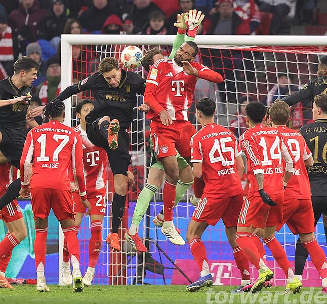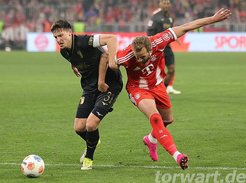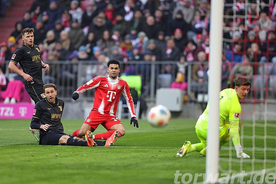 Im weiteren Verlauf der ersten Halbzeit hatten die Hausherren noch weitere Möglichkeiten, doch konnte sich Dahmen jeweils auszeichnen und bewahrte seine Mannschaft zur Pause vor einem höheren Rückstand. Auch in der 70. Minute war der Augsburger Schlussmann wieder einmal zur Stelle. Wenig später drehten die Fuggerstädter die Partie, während den Bayern nur noch wenig einfiel. In der Nachspielzeit ergaben sich für die Bayern noch zwei gute Chancen, doch konnte erneut Dahmen parieren und Olise setzte einen Schlenzer aus rechts versetzten 17 Metern an das Lattenkreuz der langen Ecke.