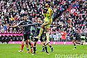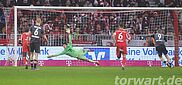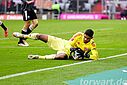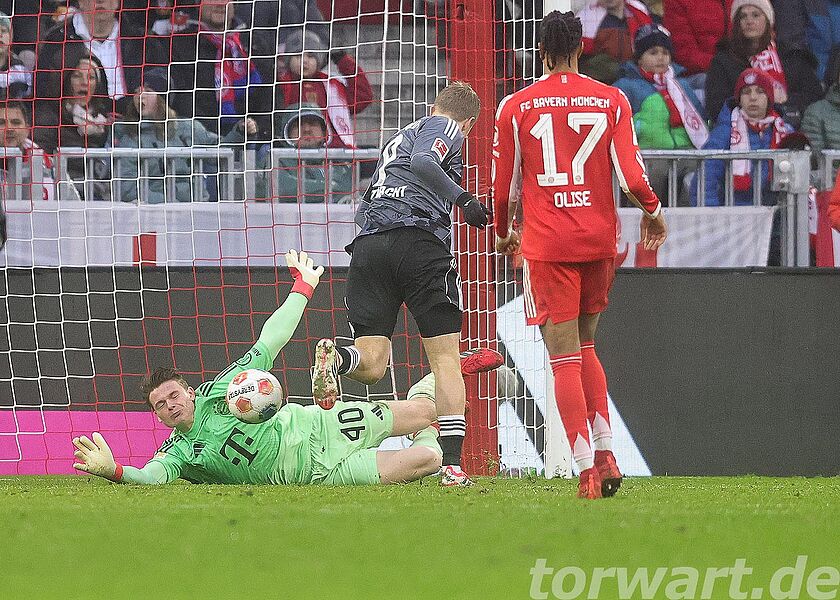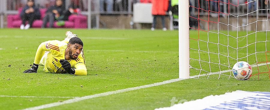 In der 16. Minute erzielte Pavlović mit einem Distanzschuss die Münchner Führung. Dieser hielt aus 18 Metern einfach mal drauf und traf flach in die rechte Ecke. Dabei hatte Santos die Reichweite, um den Treffer noch zu verhindern, doch rutschte ihm der nasse Ball unter den Händen hindurch ins Tor. Für den Keeper, der in der Vergangenheit bereits stark kritisiert wurde, war es erneut ein Gegentreffer, der für eine Formkrise spricht.
